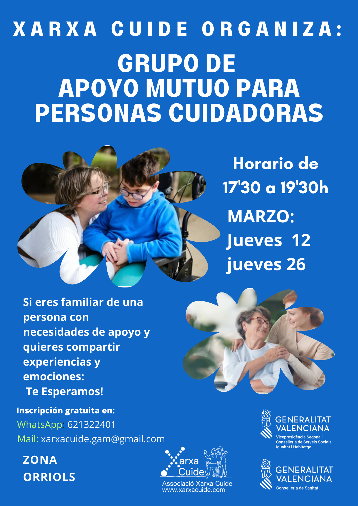 Somos una asociación valenciana que nos esforzamos por mejorar la calidad de vida de las personas con necesidades de apoyo y sus cuidadoras, ofreciéndoles orientación y acompañamiento en todo aquello que puedan necesitar en su día a día.